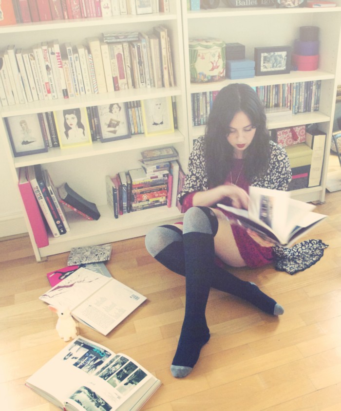 This week, I am styling it down – I thought it would be quite an amusing exercise to take something that was designed to be a party dress and style it in a cute, cosy way to wear while lounging around in the house. The dress is so comfortable with its silk lining that it works just fine.