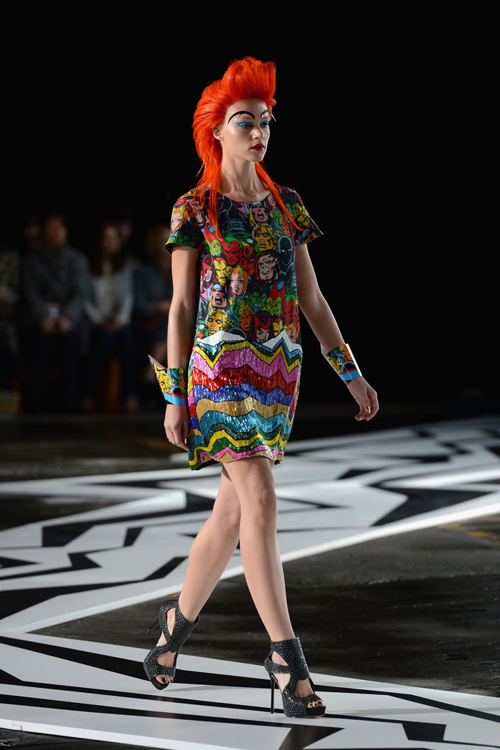 Traduction – Pour une fanatique de comics comme moi, l’idée d’une collection inspirée par les super héros et réalisée en collaboration avec Marvel est plutôt séduisante. Les imprimés utilisent la technique dite du Kirby Dot, créée par Jack Kirby, ainsi que d’autres techniques normalement réservées aux comics comme le half toning ou encore le CMYK printing.