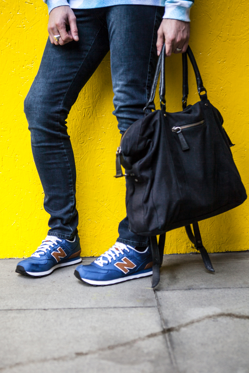 I am wearing: Rain Coat by Won Hundred, Black Trainers by All Saints, Black Jeans by Topman - Jumper and Bag by Won Hundred, Watch by Uniform Wares -Sweatshirt and Jeans by Won Hundred, Trainers by New Balance