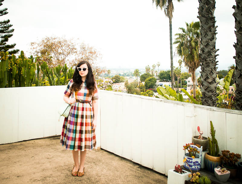 I am in Los Angeles on holidays for the next week or so – hurray! – so I am finally able to wear my Spring clothes – hurray again! This is the dress I picked up in Toast in Marylebone and I love it. It was perfect for Easter with its pastel checks.