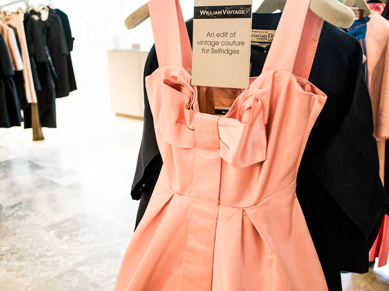 When I visited the gorgeous WilliamVintage Pop-Up Store in Selfridges yesterday, I had this feeling again. I was both a little girl dreaming of princesses and a fashion lover humbled by the beauty of cuts and fabrics. The collection includes some of the finest vintage couture pieces from Balanciaga, Madame Grès, Givenchy, Lanvin, Dior and more. The WilliamVintage space is nestled between Chanel and Lanvin on the second floor of the department store.