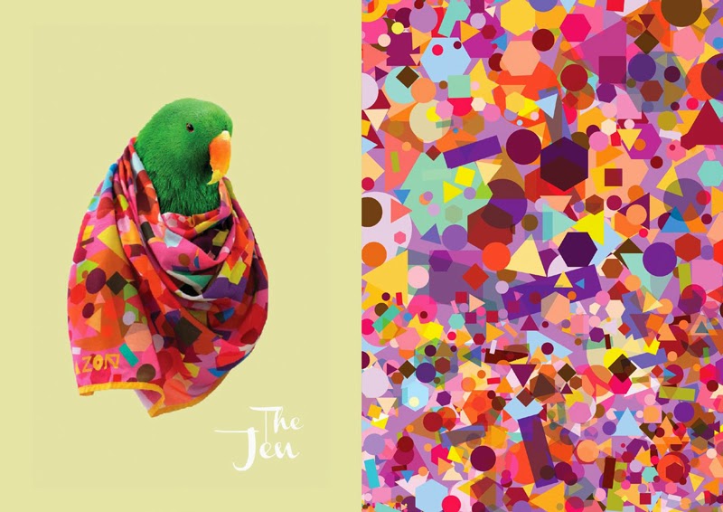 Traduction - Des foulards a imprimés géométriques et colorés par la marque Blazon, créée par Natasha Coverdale.
