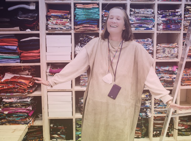 We met with Pascale in the most spectacular room, filled with silk scarves from wall to wall