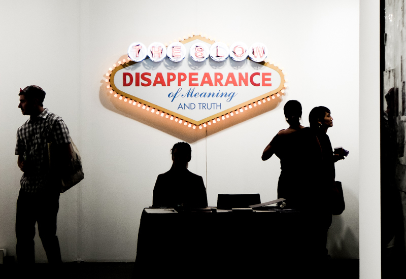 Photo taken at Pulse Art Fair in Miami – “The Slow Disappearance of Meaning And Truth” by Robert Montgomery