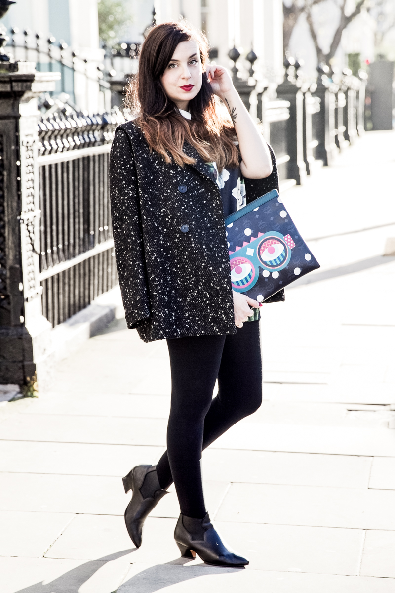 This entire post is a lie as I basically stopped feeling the need to do anything on New Year’s Eve when I was about 16 years old. However, from time to time I like to dress a little fancier than usual and so even if I will be staying home on NYE, this is what I plan on wearing. I also plan on wearing this to any drinks, events or parties in the next few months, so brace yourselves if you see me in the evening there will be lots of black satin and white digital flowers. What can I say? This is how I roll.