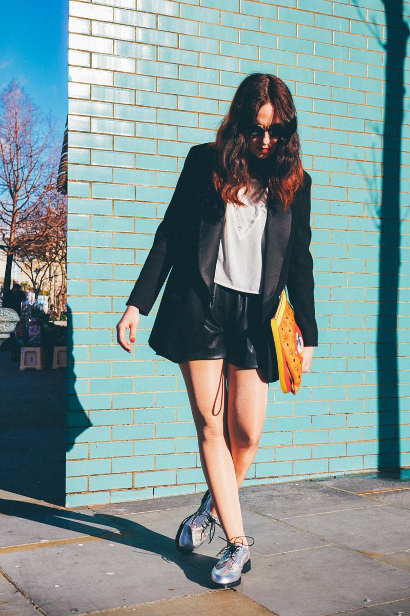 In case you were wondering what I am wearing: Isabel Marant for H&M jacket, Zara shorts, MCM clutch, Sparkle & Fade top, Zanzan sunglasses and of course DM brogues.
