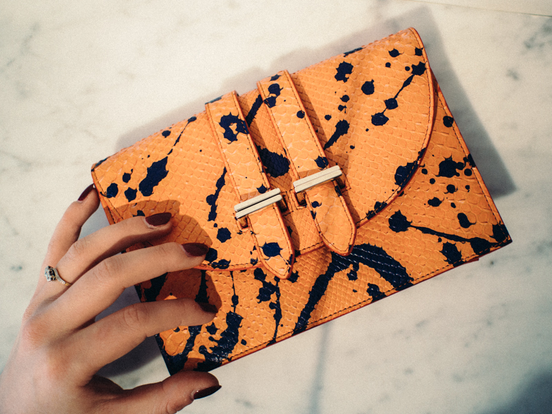 Another one I love is the Thela prep clutch in snake skin and paint splatter. SO cute!