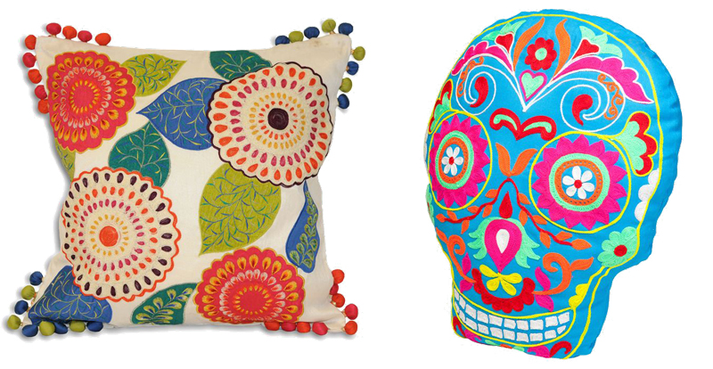 Kerala square cushion and Fiesta skull cushion from Dwell