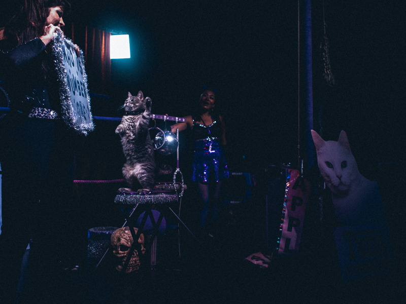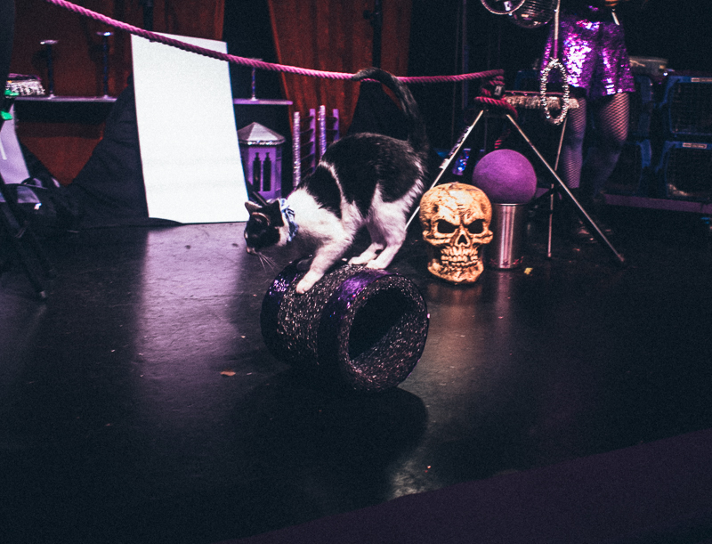 Aside from the obviously highly entertaining side of things, each acro-cats show is made to promote cat rescue and raise awareness around cat welfare issues in the States. You can foster, you can adopt and it isn’t always about kittens, remember all the older cats that need loving homes… If the prospect scares you, that’s not a problem: Samantha – the host of the show and expert animal trainer – spends a while demonstrating the virtues of click-training for cats. It works!