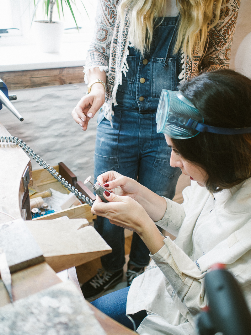 Daisy working at the jewellery bench made especially for her by her dad (who trained himself to make jewellery when she was little)