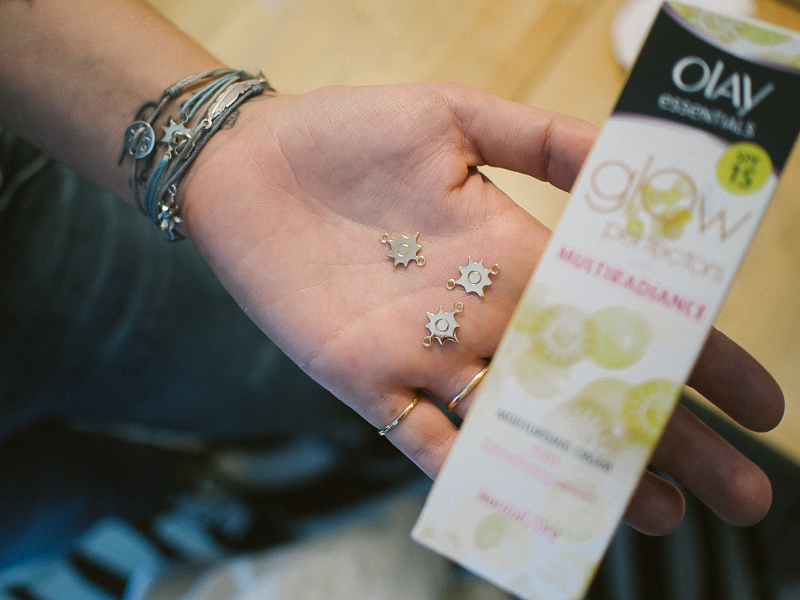 Then it was time to make a necklace using the sunshine charm – you can see it here and also on the Olay Essentials Glow Perfectors packaging.