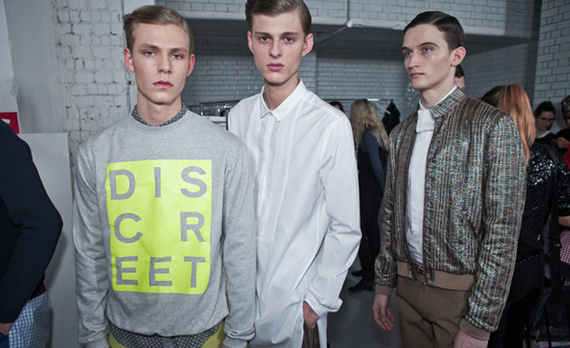 Sweatshirts with curiously oblique slogans have become a micro trend for men of late. I’ve been a little confused by most of these. Acne’s current AW14 versions states “You First” and “Spectacular Sensation” neither of which make much sense to me… I guess something got lost in translation. Richard Nicoll offers a “Discreet” or “Brutal” version, which also leave me feeling somewhat underwhelmed. Wood Wood, however, have come to the rescue with their “Pas Normal” sweatshirt. It’s perfect: a little bit French and a little bit weird. It’s me all over.