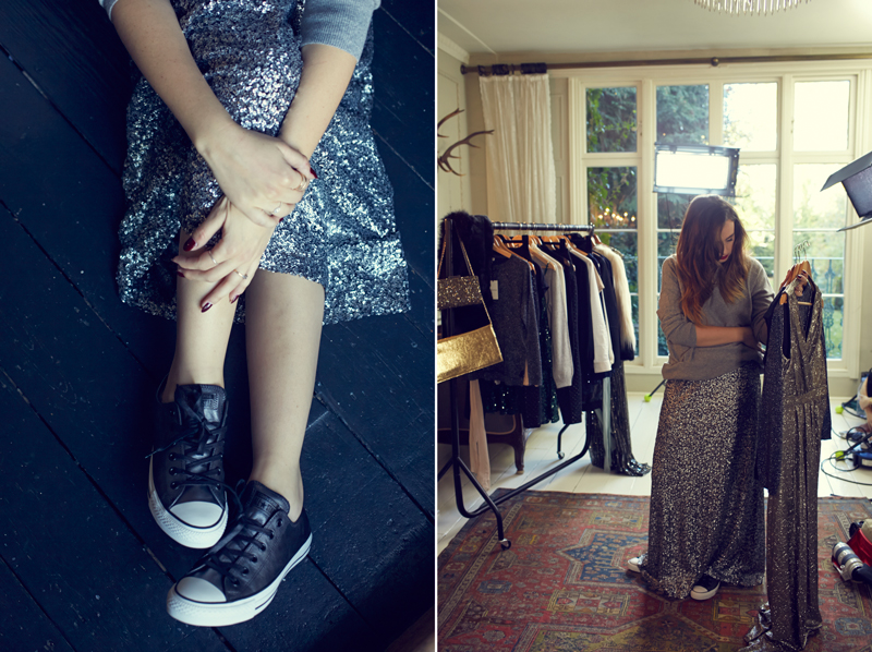 Maxi skirt and sequins aren’t exactly a combination you’ve seen often on this blog. However, as soon as said skirt is paired with an oversized cashmere jumper and Converse, it becomes a pretty casual piece, perfect for Winter dinner parties! No accessories needed, apart from a big fat cuddly cat.