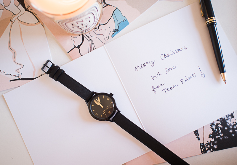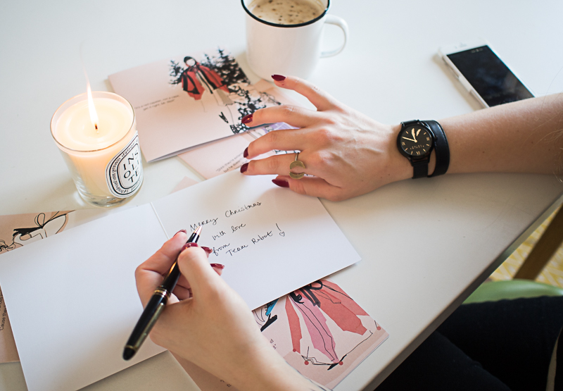 Today, in the spirit of giving, I partnered up with my jewellery designing pal Daisy Knights to give you a chance to win one of her limited edition watches, which are a brand new addition to her collection. And because the lady can literally do no wrong, her wraparound watches are pretty much as awesome as the rest of her designs. Here I am, proudly wearing mine as I finally sit down to write all my Christmas cards… When really what I want to do is get ready for my birthday drinks. See? Sorry Santa.