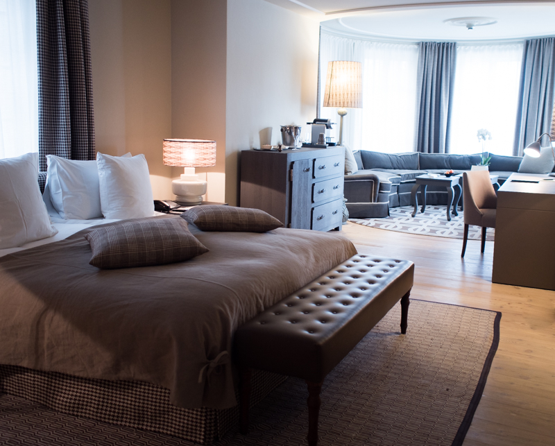 I recently stayed at Le Grand Bellevue in Gstaad which made it straight into my top five European Happy Places. After a skip and a jump (read: a plane and two trains) from London to Gstaad, I was a little weary. It took as long to get there as it would have taken me to fly to New York. For three days, it may seem a little ambitious, but I can already tell you it was well worth it. Arriving at Le Grand Bellevue is like visiting your favourite relatives in their country home. A country home you know and love. You are greeted warmly, escorted to the lobby – which looks more like a plush living-room – and served a small glass of home made iced tea. Delightful! After a short introduction, it is time to go up to your room, where your luggage awaits. Not sure how they do that, probably teleportation.