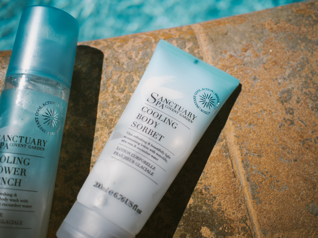 So, swollen legs. They are painful upon landing, then hit by the heat there is no real hope of getting them to go back to their normal size, is there? For the longest time, I spent holidays in mini skirts, staring in disbelief at my usually alright legs suddenly transformed into inflated beasts. NOT ANYMORE! I finally found my saviour, knight in shining armour in the shape of a very powerful wizard of skincare from Sanctuary Spa: it is called the Cooling Sorbet Collection and will set you back £18.