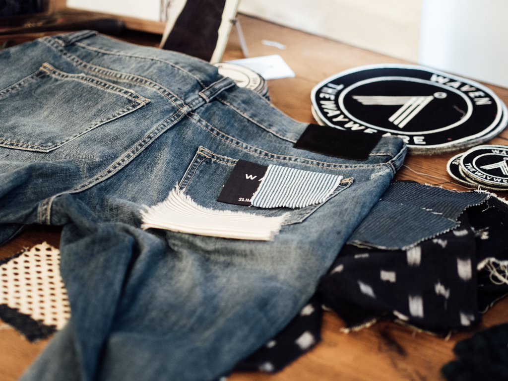 This is a bit of a particular DIY as I didn’t do any of the below myself (two left hands and all that) but I “imagined” the end result and then worked alongside a jean genie to fulfil my wildest denim dreams. This came about when I visited the Wåven pop-up store on D’Arblay street a couple weeks ago. Sadly, the pop-up is no longer, but a) you can still buy their cool jeans online and b) you can use any old pair of 501’s for this project c) if you are better than me at DIY (which is highly likely) you don’t even need the help of their jean genie.