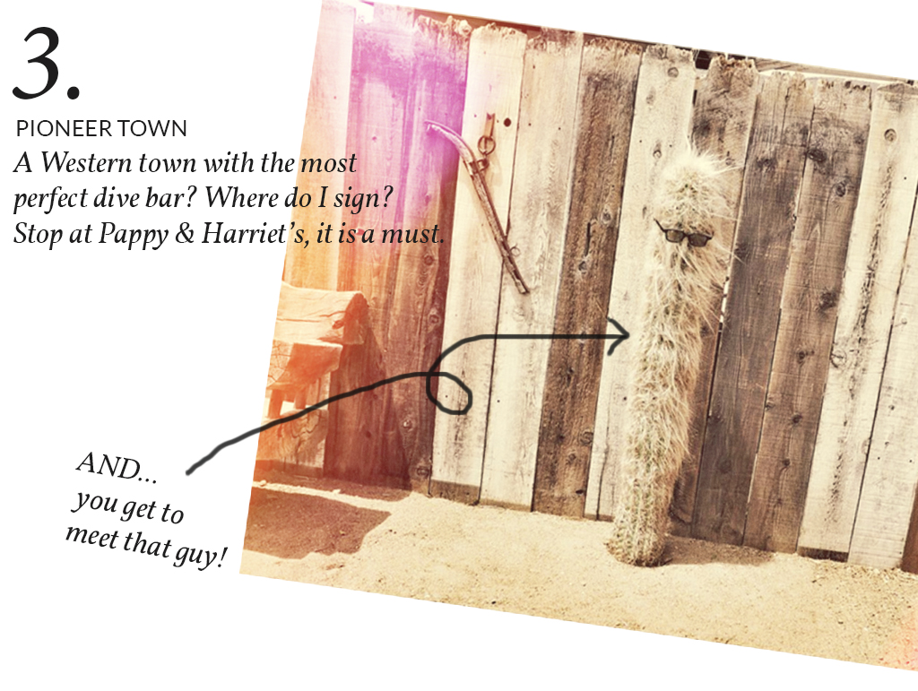 Then it was time for the main attraction: Joshua Tree National Park, via Yucca Valley and Pioneer Town. We only had one day to visit the desert and so we wanted to make it count. I had never before been to the desert. I’ve been to Palm Springs a handful of times, mostly to chill by the pool and eat but the desert was a first. And without sounding like a cliché, it is all I can think about. Well, that and Magic Mike XXL. First of course there is the heat, an intense, burning, relentless heat, so intense it almost becomes pleasant. The same range of sensation as a tattoo I guess. Or that of a great crush: irritatingly pleasant. Then there is the silence. Complete silence isn’t something I am accustomed to, living in the centre of London. In the desert there is nothing but the sound of your footsteps (and the shutters of our chorus of Olympus Pens – we call them “Olympi” because we are a**holes). I took approximately 5 million photos, because how could I not?