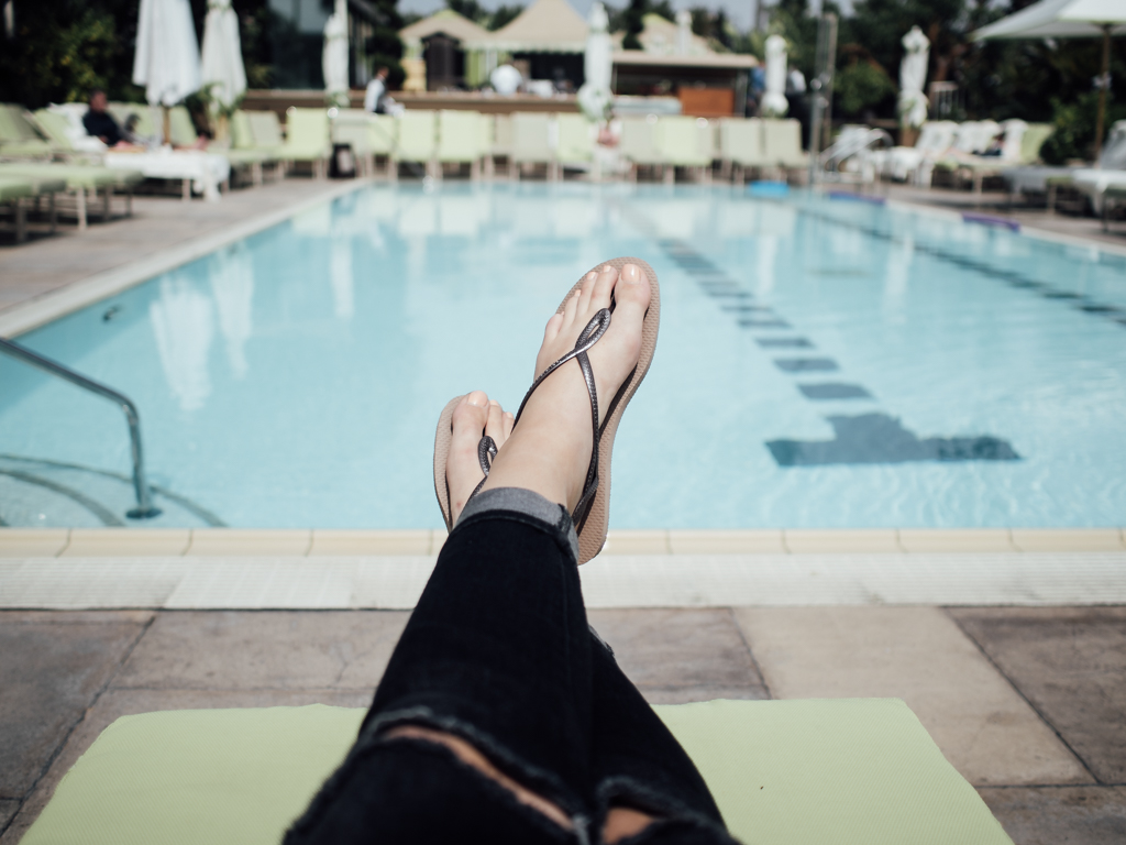 I have my go-to items for each season, Acne Studios ankle boots for Winter, crisp white Superga plimsolls for Spring and Havaianas flip-flops for high-Summer, when I retire to the South of France and spend my time between farmer’s market, pool and the occasional beach excursion. This is a family tradition and each year my mum and I will go and hunt down a pair of Havaianas which will last us the entire Summer (and possibly more), but then each pair becomes associated to a specific Summer memory and you can look back at them and remember all the sunny fun you had. I like it. As a result my closet in our country home looks a little like a Havaianas museum but I can read those sandals like a scrapbook of Summers past. The pair below is very special already as it travelled with me to California, where I made new poolside memories at the Beverly Wilshire and Four Seasons Beverly Hills, getting into all sorts of shenanigans with my two partners in crime.